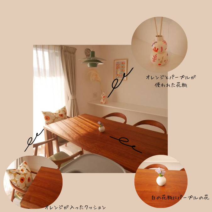 私はどうしてもこのアートが飾りたかったので、絵に使われているオレンジとパープルを部屋のアクセントカラーにすることにしました。