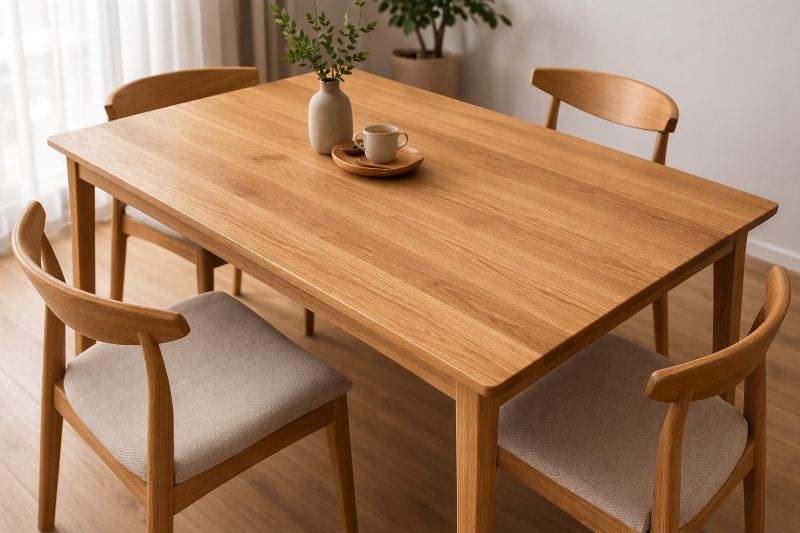 家具の木の色を選ぶことに迷いがあるなら、建具と同じ色にしておけば、まとまりが出て、部屋に広がりを感じさせます。